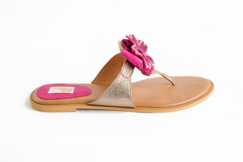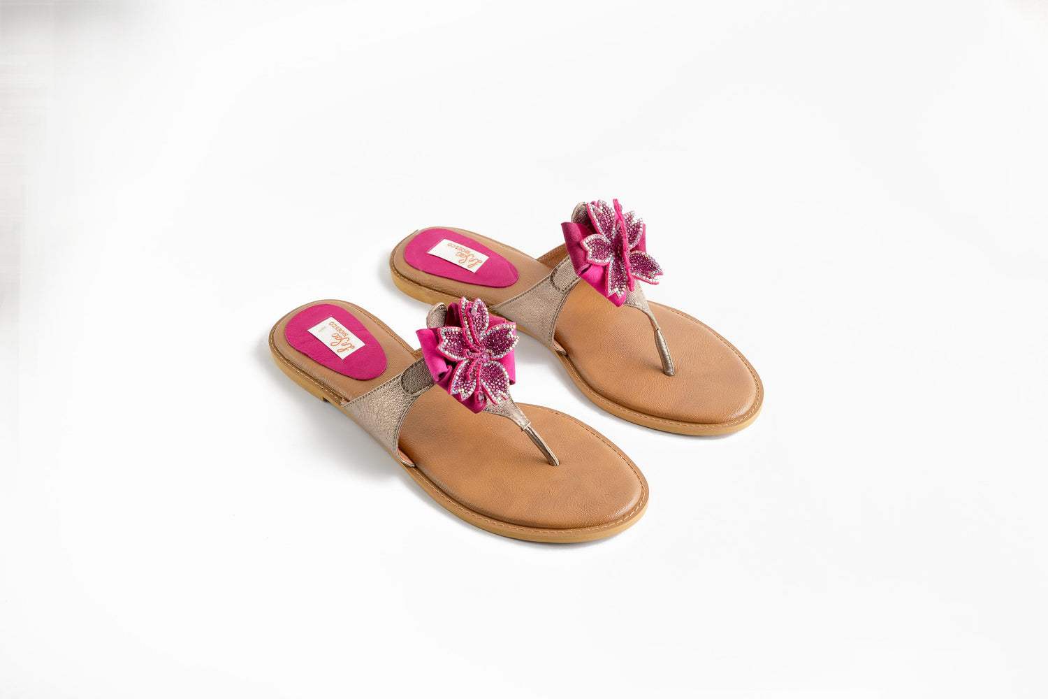These genuine leather sandals feature a beautiful diamante-studded flower on the strap, adding a touch of sparkle and elegance to your everyday look.