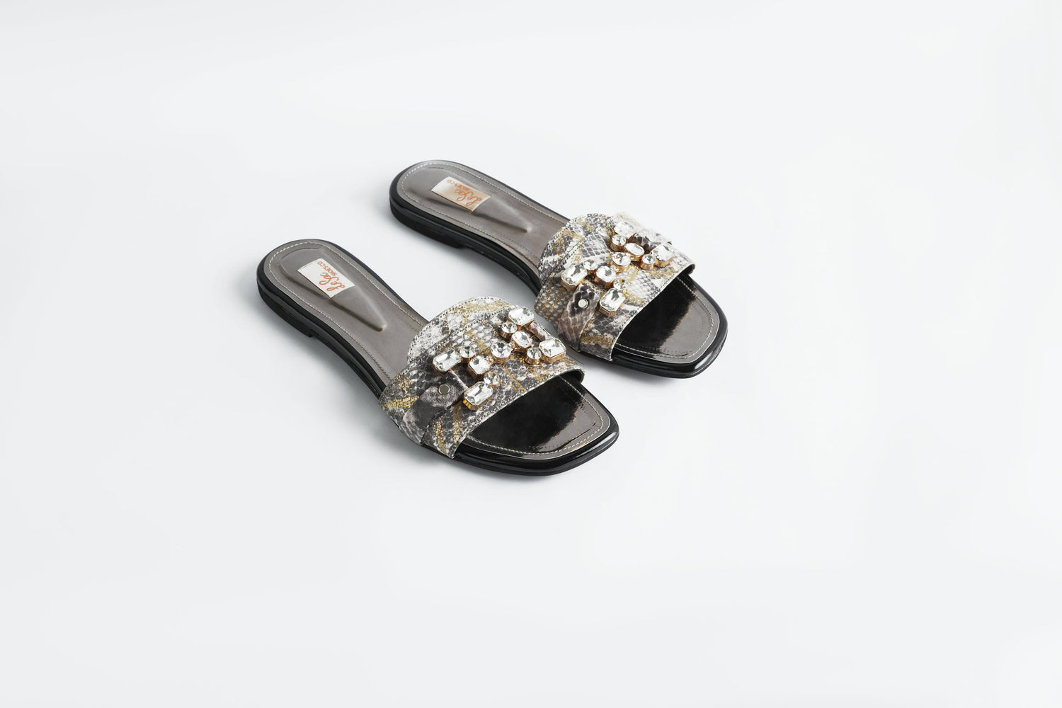 Crafted from durable genuine leather, these sandals come with double buckle straps adorned with sparkling diamantes. A great choice for adding a bit of shine to your everyday look.