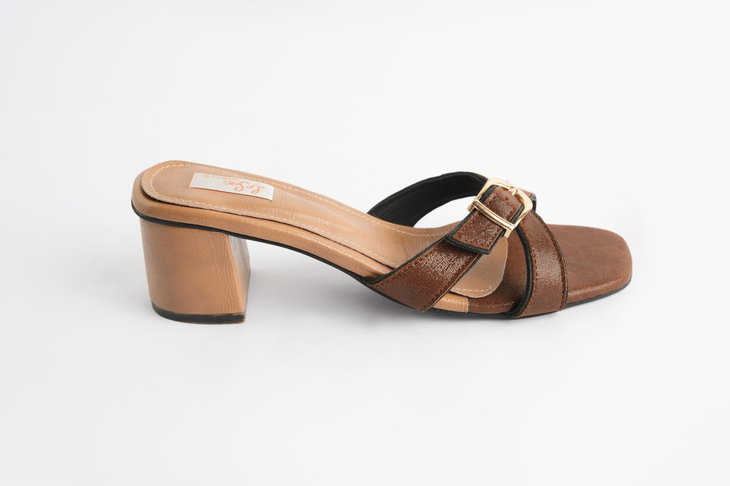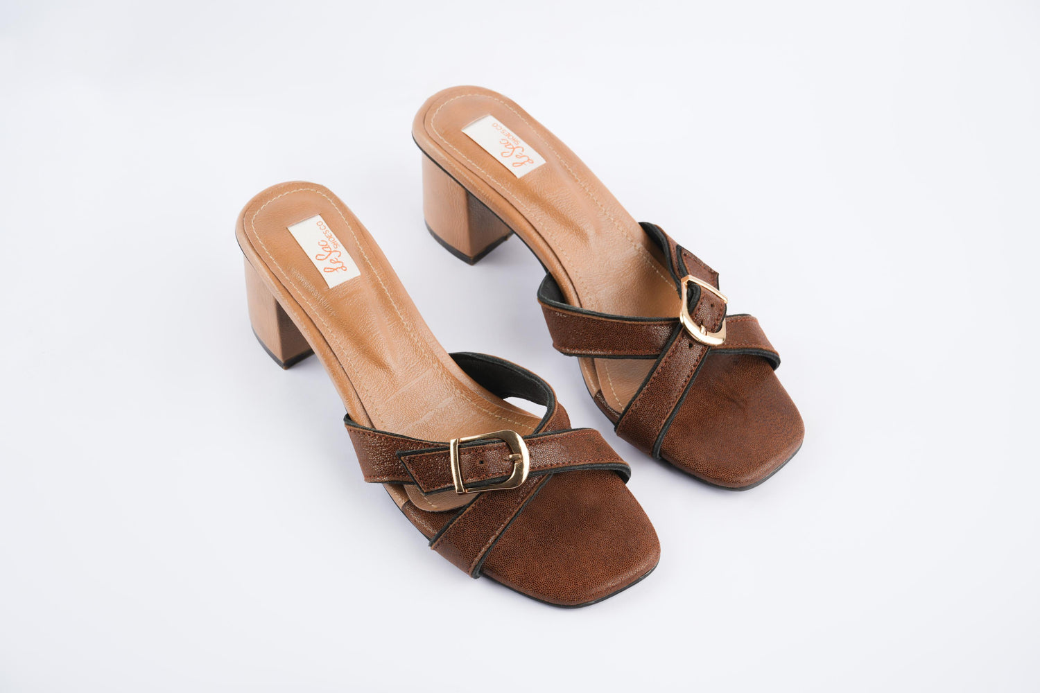Leather Heeled Sandals with Cross Strap and a Buckle
